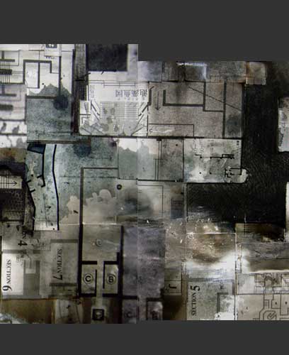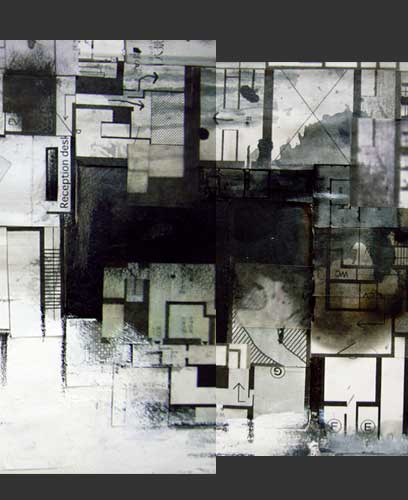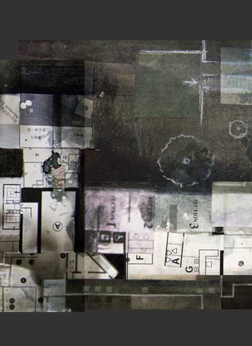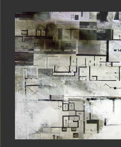 matterial=石膏ボード、美術館・ギャラリーなどの案内図、墨汁、ジェッソ、木炭、チョーク、出力紙